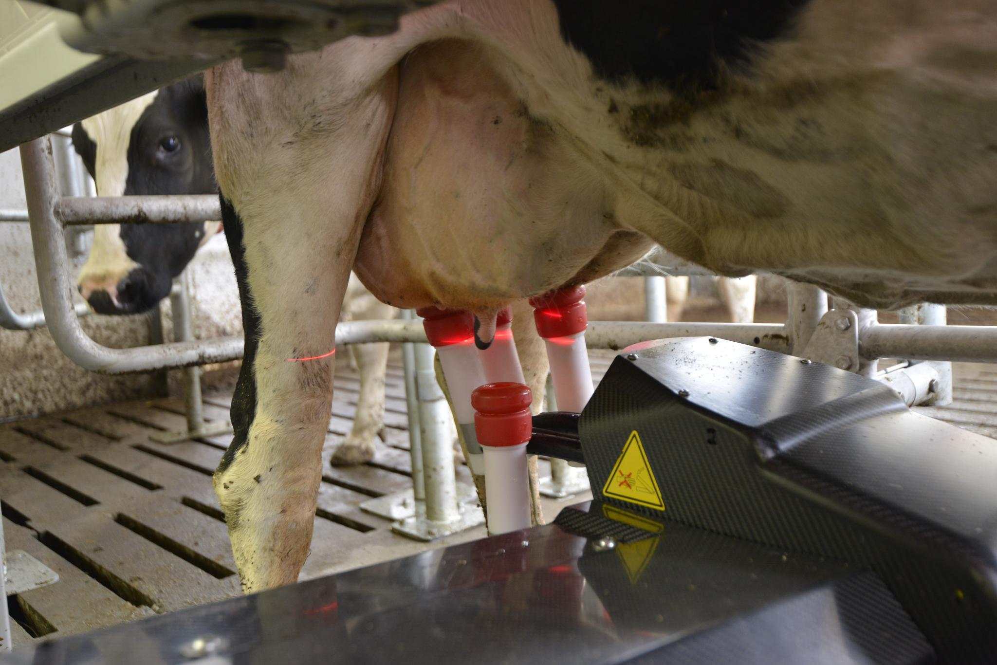 The unit uses a robotic arm to wash each teat before lasers guide the attachment of milking cups. As cows are milked, they are fed a specific ration based on their milk production records. Sensors collect information about weight, quarter yield, quarter conductivity, colour, fat, protein and somatic cell count, which is a key indicator of udder health and milk quality.